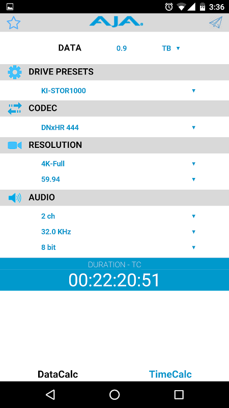 AJA DataCalc computes Storage Requirements for Professional Video & Audio Media.