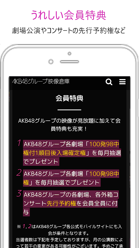 * 1 and 2 require membership on each official mobile site of the AKB48 group.