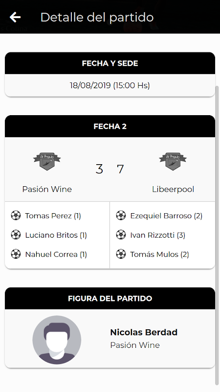 I always have all the information of your tournament at hand. You can check results, scorers and all the statistics of it.