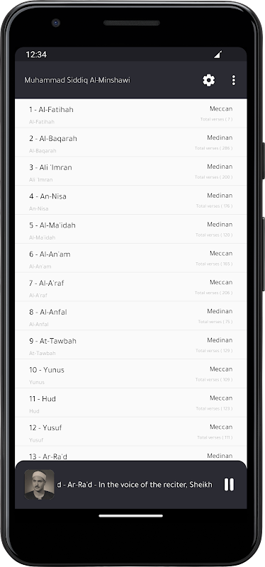 The application of the Holy Qur’an with the voice of the reciter Muhammad Siddiq Al-Minshawi allows you to hear all the surahs of the Holy Qur’an through your phone or tablet with ease and ease through one application that contains all the surahs of the Holy Qur’an without the Internet. Fans of listening to the reader Muhammad Siddiq Al-Minshawi, you will not need to pay money to download the application.