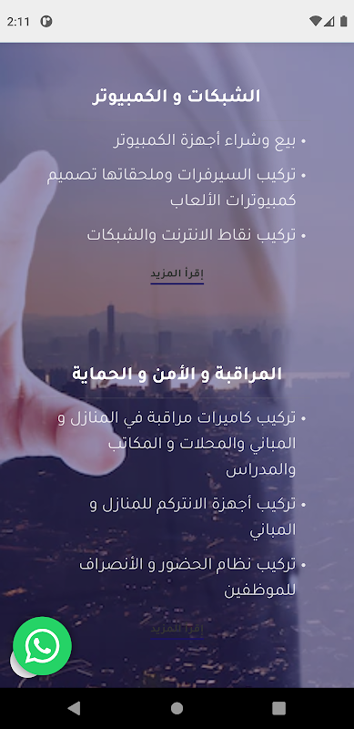 تركيب كاميرات مراقبة في المنازل و المباني والمحلات و المكاتب والمدراس – تركيب أجهزة الانتركم للمنازل و المباني – تركيب نظام الحضور و الأنصراف للموظفين – تركيب البوابات الإلكترونية للسيارات – تركيب الأقفال الإلكترونية للأبواب