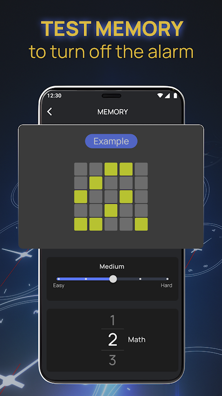 ✅ Challenge Alarm: Challenge yourself with activities like walking a few steps 🚶♀️, recalling a series of numbers 🔢, or typing a short sentence ⌨️. Your alarm will stop once you complete the challenge.