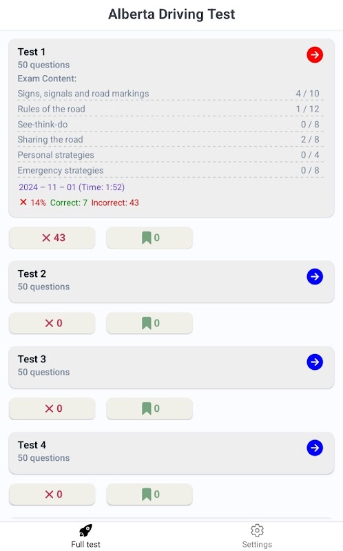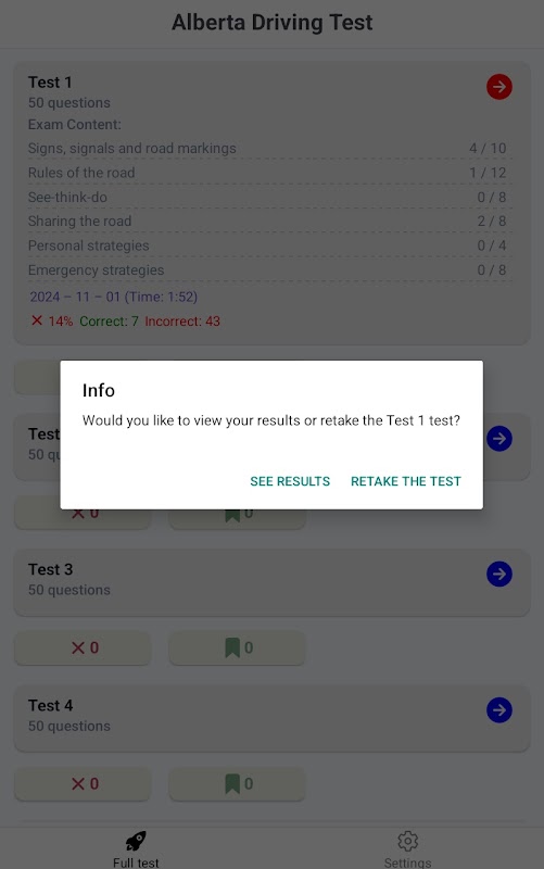 - New questions every time: random questions and answers every time you restart an Alberta Driving Test.