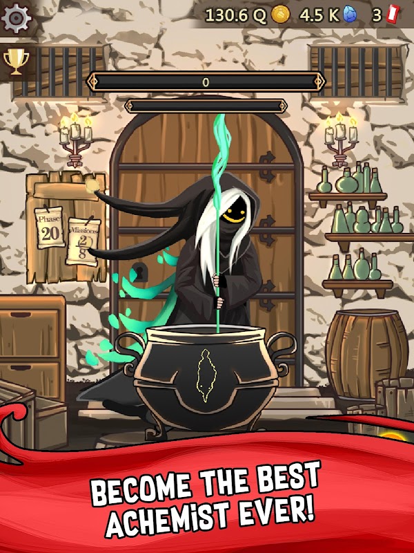 Nice looking fantasy medieval theme! Improve your alchemy like a rpg game!