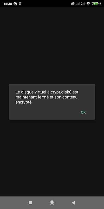ALCrypt manages the opening (decryption) and closing (encryption) of this folder.