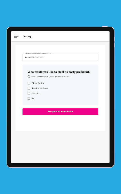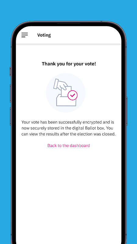 • Secure Digital Voting: Cast your vote directly in the app with confidence. The voting process is encrypted, secure, and verifiable, ensuring the highest standards of integrity.