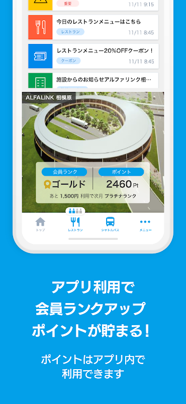 GLP ALFALINK This is the official app for those who use Sagamihara. Face recognition admission and restaurant orders make it comfortable without lining up during busy hours! Also available to non-employees.