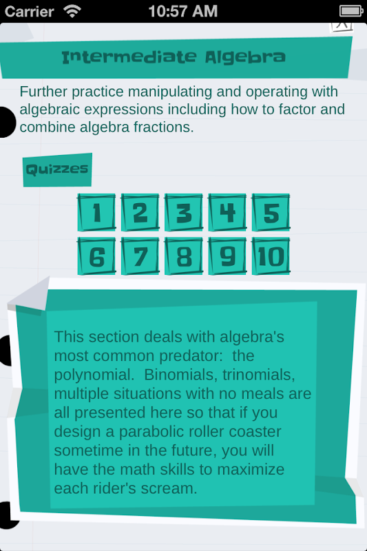 Algebra practice is cake when you play this FUN GAME designed by TOP TEACHERS who bring you exciting math skills practice that will explore all the mathematics you need to master and prepare for college, high school or university pre-calculus and calculus courses. Challenge and upgrade your algebra skills while having mega fun playing a game that takes you through intermediate algebra practice including factoring, polynomials, rational expressions, all the way to sequences and series and even matrix manipulation and calculation!! College level questions get you ready for ACT, SAT and GCSE tests while you train your math brain!!!