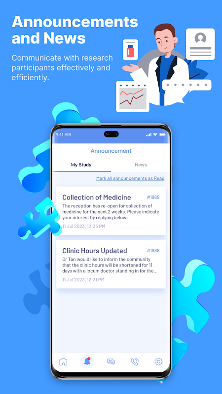 Doctors are provided with an easy-to-use tool to efficiently manage patient accounts, research activities and communications. Patients are able to effortlessly participate in the research remotely and interact with the doctors on treatment, medical care and follow-ups.