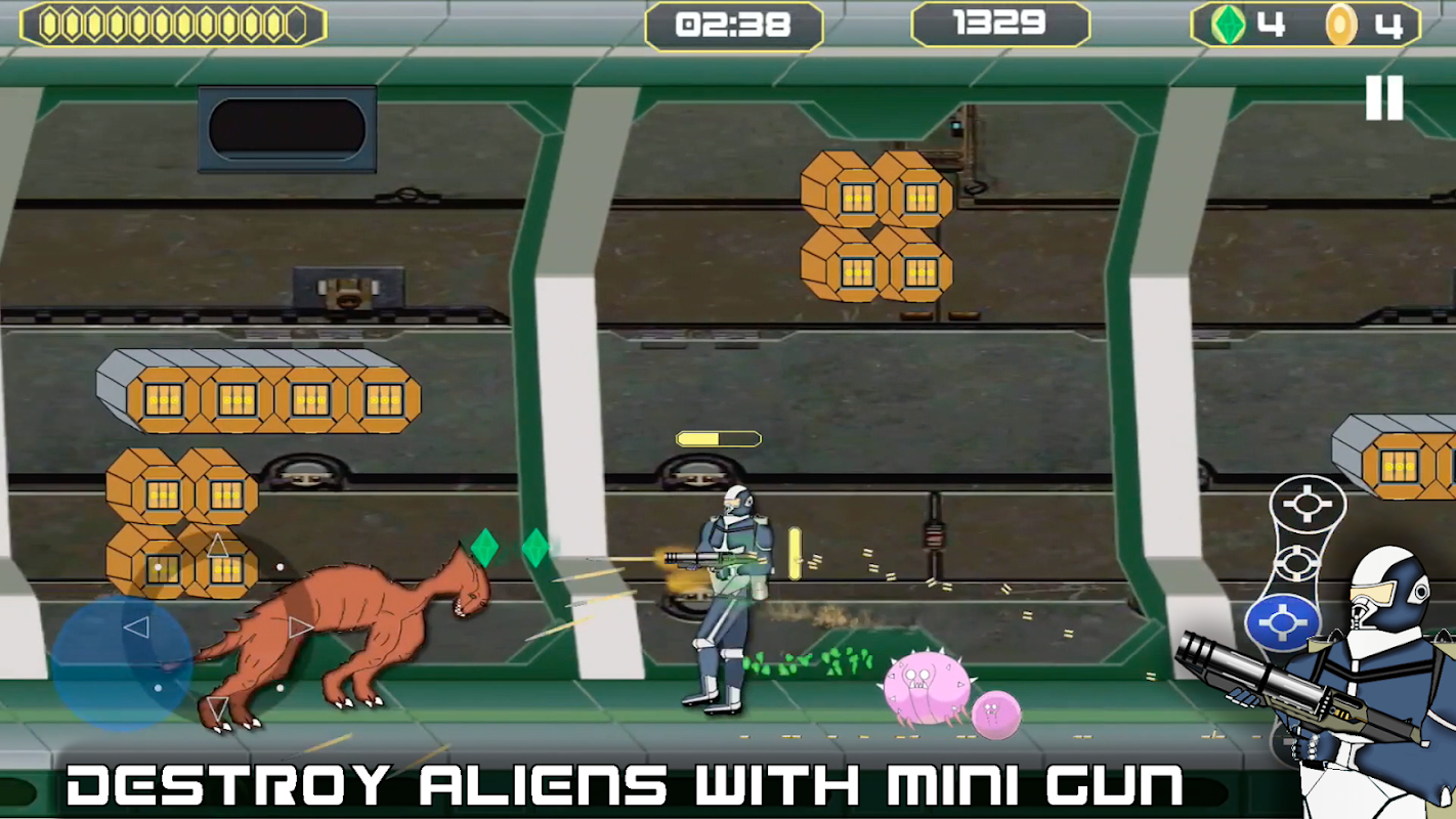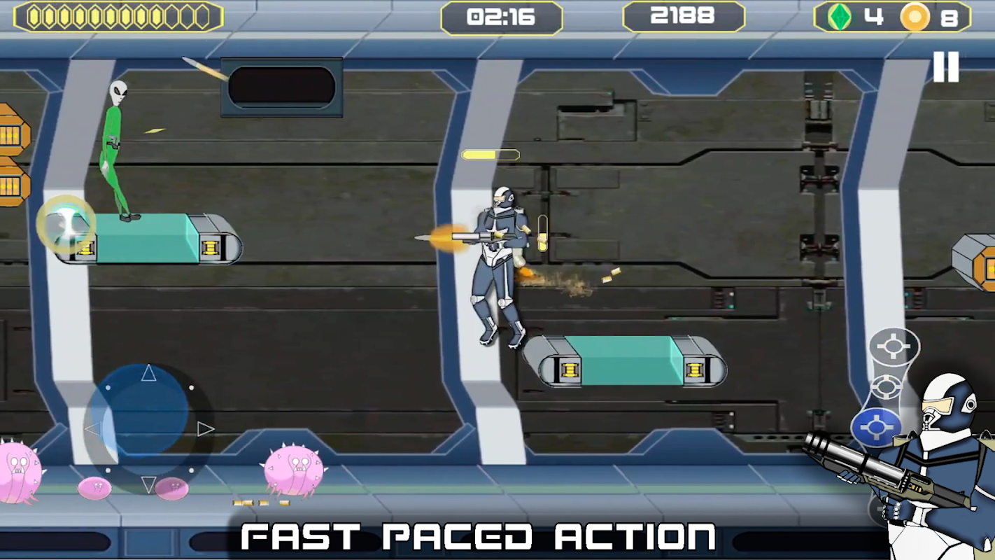 Fly with jetpack, destroy aliens with gun fighter hero.
