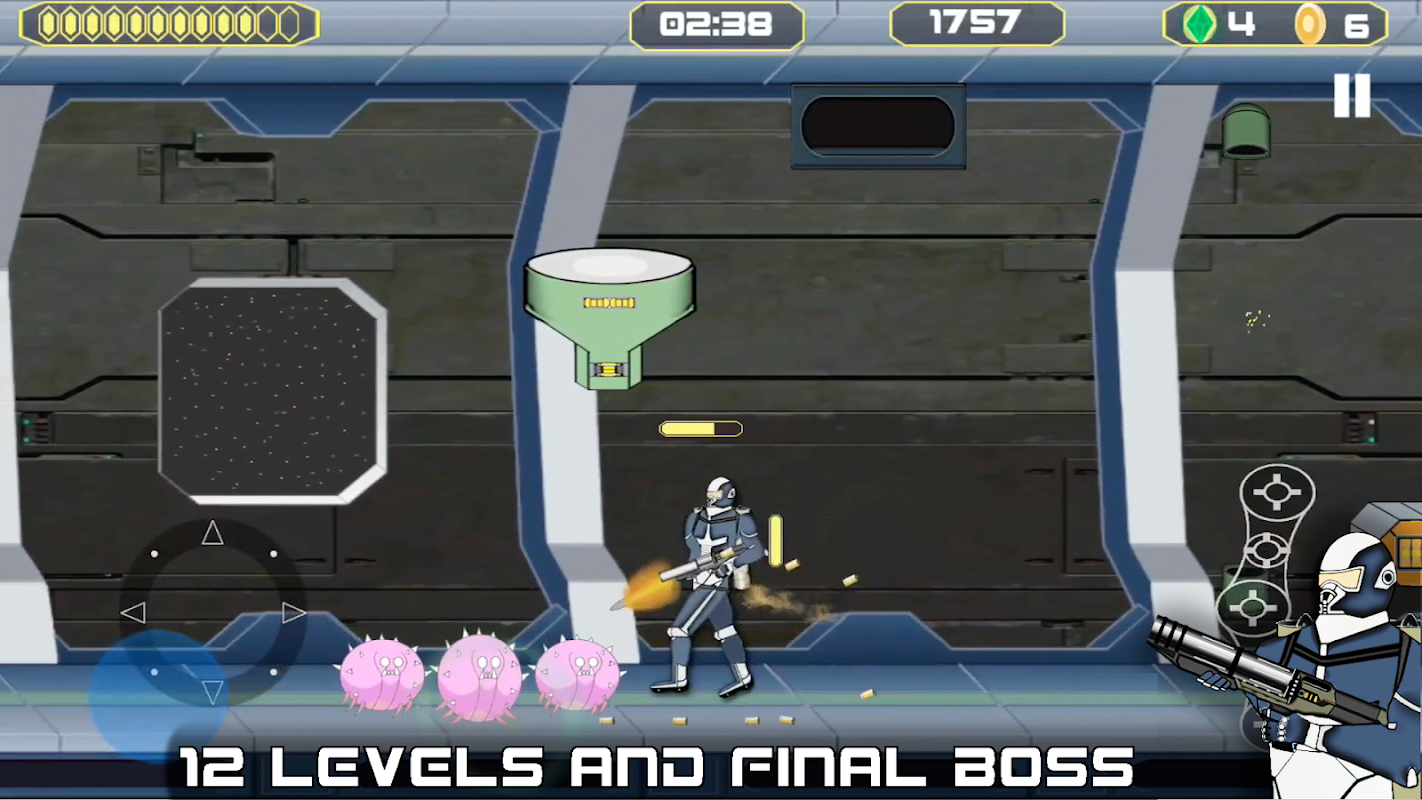• Fly the coolest jetpack and shoot your way through 12 spaceship levels.