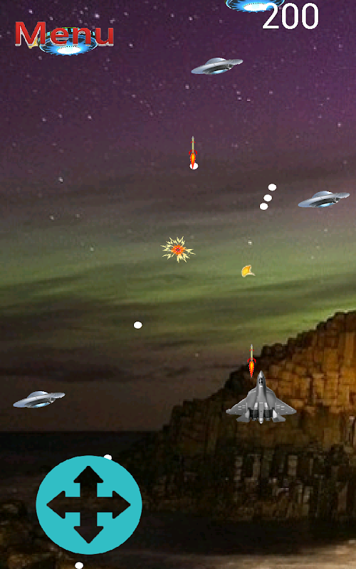 Avoid the aliens' bullets. And shoot a missile and destroy UFO.