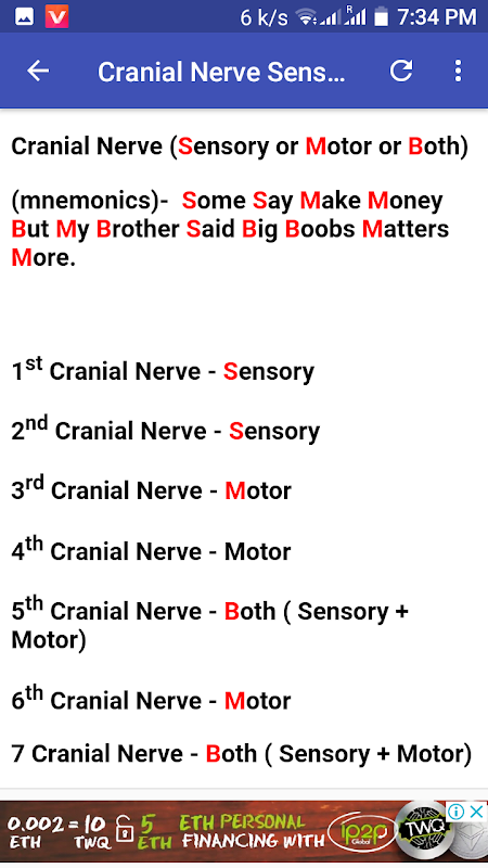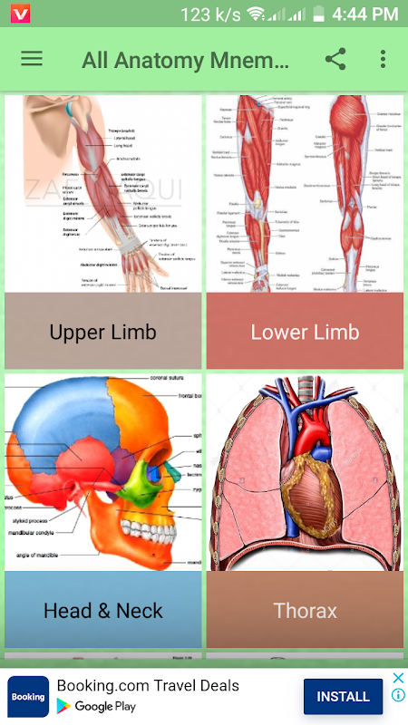 This apps gives a clear mnemonics description of whole anatomical part of the body which include: