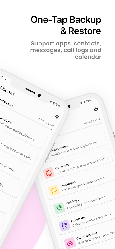 backup & restore apps, contacts, SMS, call logs & calendar events