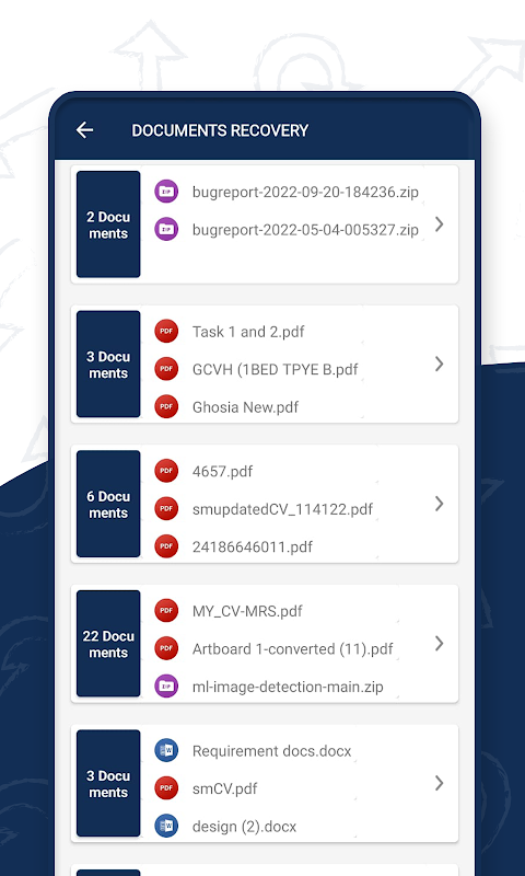 By using this quick All Data Recovery - Recover Deleted Files tool - File Recovery, user can easily recover all their data and deep scan of their device and easily recover all of their lost data, recover audio, recover documents, recover video, recover photos, recovering and restoring all their seen and unseen files. In All Data Recovery - Recover Deleted Files - File Recovery app lets user recover video, recover documents, recover audio, recover photos from both Phone storages or external from their devices.