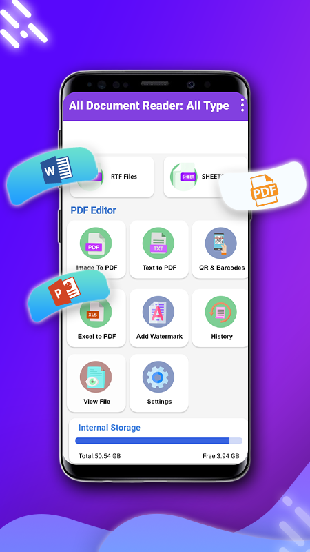 document reader is a dedicated document reader and editor app that supports all file formats sach as PDF, DOCX, XLS, PPT, TXT...etc.