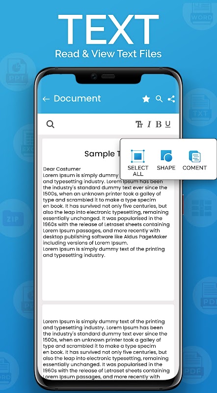 All document viewers are a fast way to read all documents instantly on your device. It helps to read all documents like excel, word, ppt, pdf, and others. It offers multiple features of reading documents including text, ppt, and all document files. The doc viewer allows you to manage and arrange all documents on your device. Edit any document, view it, save, and share any document with anyone. Manage all documents and arrange them in one folder or separate with name in your mobile. Doc reader & viewer is a fast way of reading word documents on your device. All document reader and files viewer has features of easy to access any document and share all documents via doc reader. Download all documents, read or edit them in one place easily and frequently. All document readers are fast and quick doc readers to view document files.
