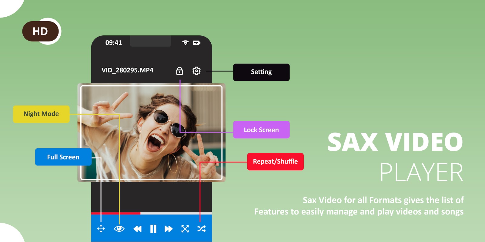 All HD Video Player - Sax Video Player 2021 for Android: Free Video player is the latest free Multimedia player for the Android smart phones which allows you to watch all popular video formats on your phone or tablet with hardware acceleration for quick and smoother HD playback and different amazing features to provide you best experience of video player