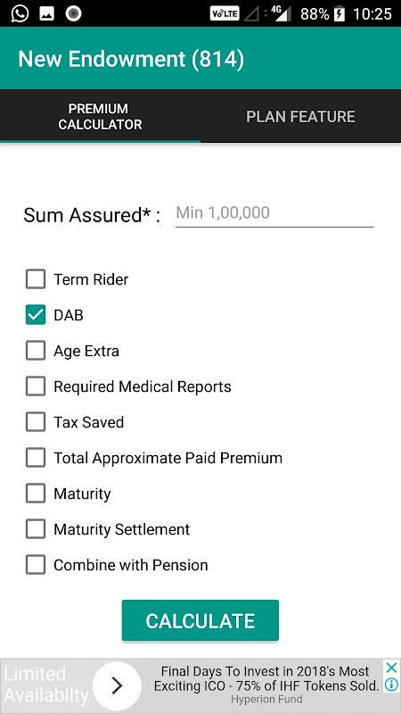 Disclaimer : Premium Shown APP is Indicative and not Exact, Actual Premium May vary according to underwriting Rules Applicable. Maturity Calculation display in app is Approximate(Current rate of bonus). For more details on risk factors, terms and conditions please read sales brochure carefully before concluding a sale.