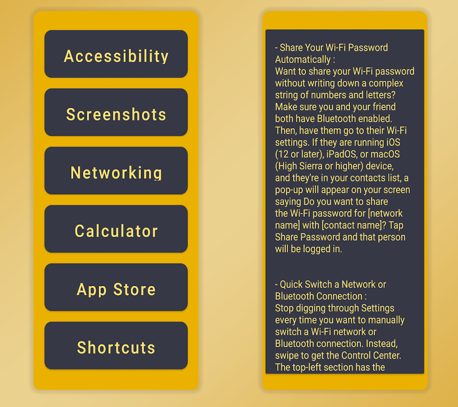 In this app, we will show you some iPhone Tips and Tricks