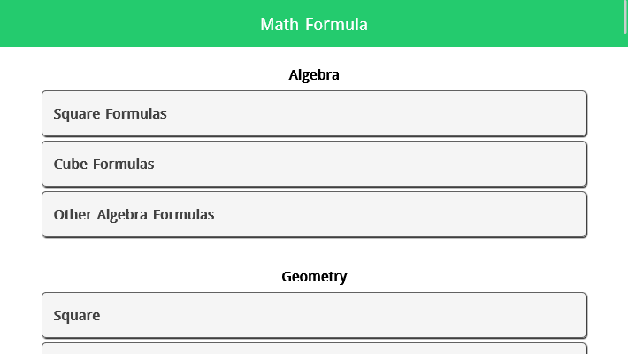 Math formulas are necessary for solving a wide range of issues and activities in mathematics and related subjects. However, for many students and learners, learning and remembering them can be difficult and irritating. That is why we developed the math formula application, a powerful and user-friendly tool that enables you to master arithmetic formulae with ease and enjoyment!