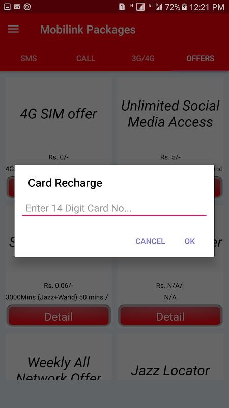 All Mobilnk Pakistan app provide all Packages information’s containing Sms, Call, Internet 3G,4G and international offers and other offers like Sim lagao offer. User can easily find the information about all types of Jazz offers. It also provide remaining sms, minutes, internet , account balance. You can recharge card by just one click. Someone can subscribe all packages by just clicking the desire package. Mobilink (Jazz) Packages 2019 free and Updated.