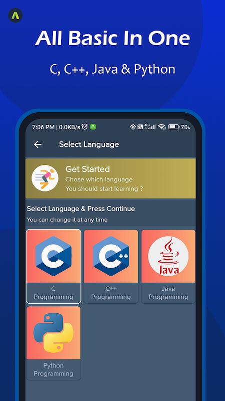 A Simple and easy programming and coding app to learn code with C, C++, Java, Python ( More language coming soon ) for free.