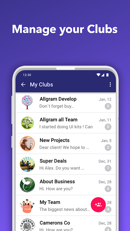 • Private or public clubs allow you to keep your club exclusive, or let anyone on allgram join.