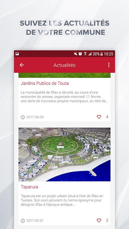 The citizen may consult the news associated with their town to stay updated with the news of his city, he may also give its opinion on the projects proposed by their municipality that can be completed or outstanding.