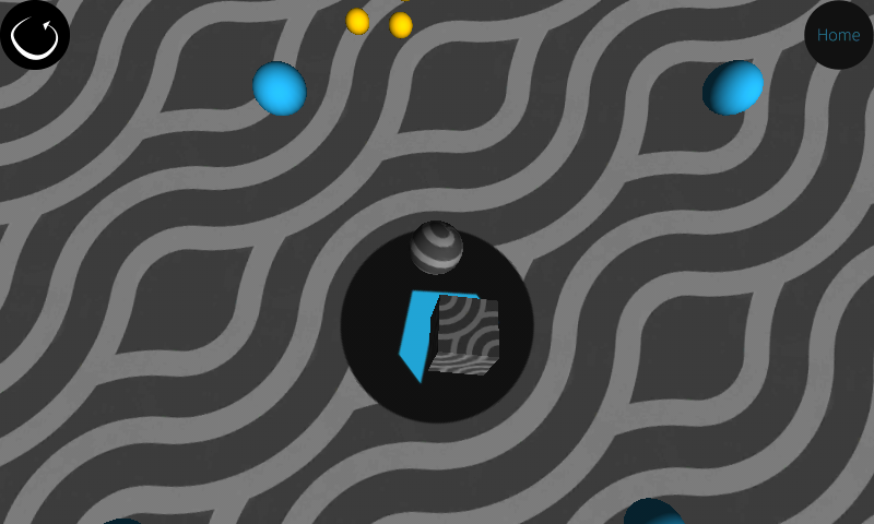 Try to reach the box in each level with the gray ball. But you can only control the gray ball by using the four blue ones, they will push in the gray ball's direction and move it. Touch to destroy the blue balls, so that you can change the direction the gray ball gets pushed. In each level there are also some smaller yellow balls, try to collect as much of them as possible when you try to reach the box.