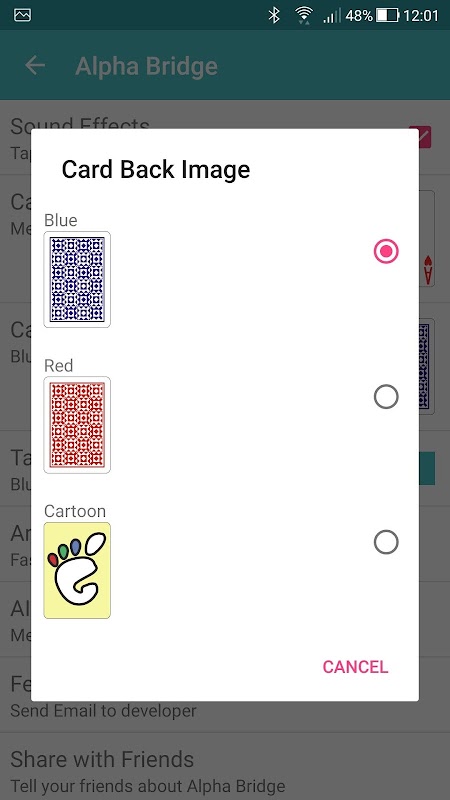 - Three card back styles: Blue, Red, Cartoon