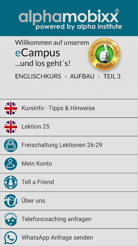 The English trainer for smartphones from the Alpha Institute, powered by alphamobixx!