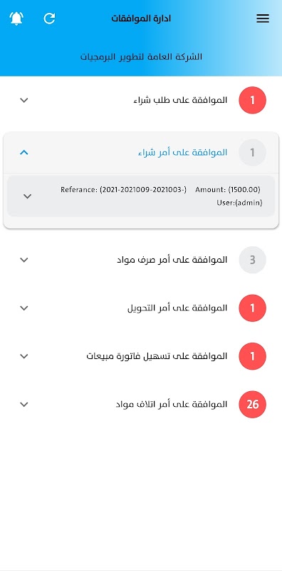 The application is designed to be a complement to the ERP system, where officials can approve financial and administrative requests and view their details related to all business affairs according to an electronic approval system.