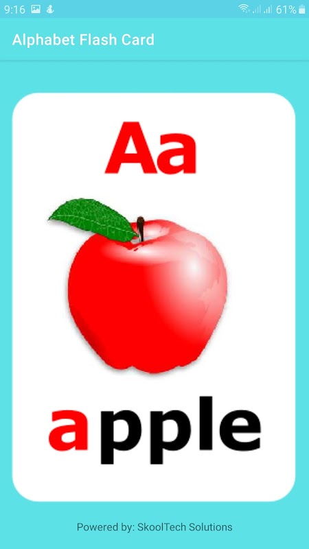 Alphabet Flash Card is an electronic version of the common flash card that is used in schools.