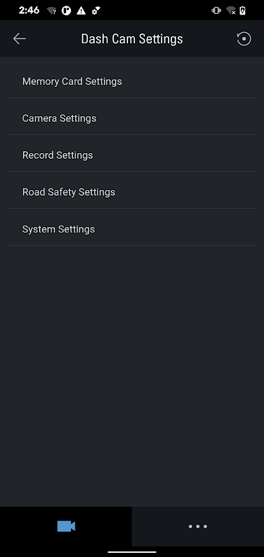 Use the functions to configure the dash cam settings or review recorded videos.