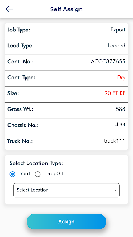 2. List of assigned containers appear after the respected login of the Driver.