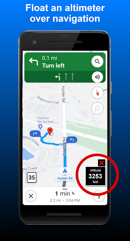 ● Floating Altimeter that you can place over your navigation app or any other app.