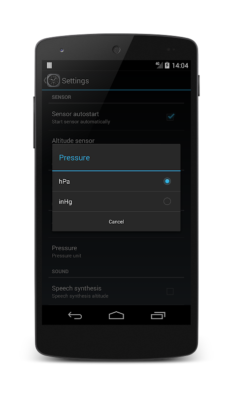 (*) These functions require a barometric sensor in your android device (tablet like Motorola Xoom, Google Nexus ics 4, Samsung Note, ...).