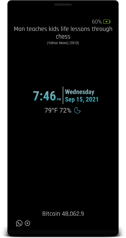 Always on Display XPath let user select their interested information show on phone or tablet lock screen. It can display phone clock, battery status, notification icon, weather, news, web text data & JSON API data. Some items can also be displayed in widgets on the home screen.