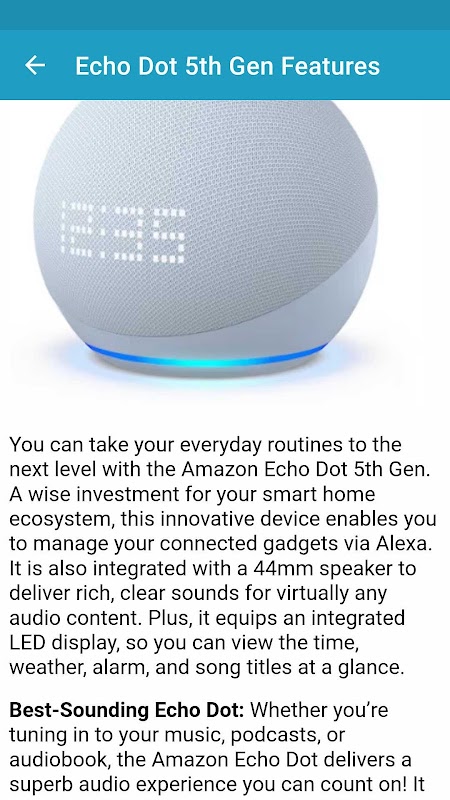 This app, in which the features Amazon echo dot 5th gen speaker are explained, is a guide.