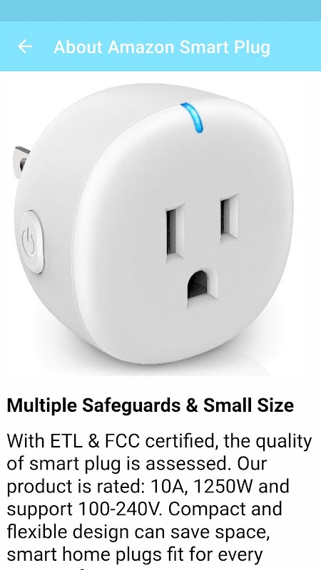 The app explains Amazon smart plug features, HOW TO SETUP, product overview and specifications. Amazon smart plug gives hands-free voice control with Alexa to turn on/off your lamps, appliances or your devices group all over your home.