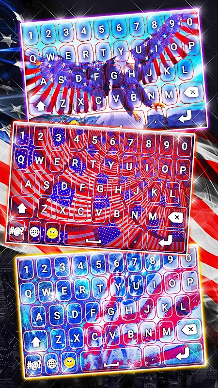 This cool keyboard emoji with “american flag theme” is one of the best keyboard changer apps on the market. It has many options for keyboard color and “keyboard style”. You can also activate keypad vibration and keyboard sound typing. If you download 'American Keyboard 2019' 🗽 'USA Keypad Themes App', you will get a multilingual keyboard with american theme and american emoji free. With this cool keypad app, you can customize your keyboard and get beautiful “usa keyboard” with american keyboard skins. Trust us, you will not regret having this american keyboard app on your device. This cute color keyboard and keyboard with emojis is the only keyboard changer an American fan will ever need.