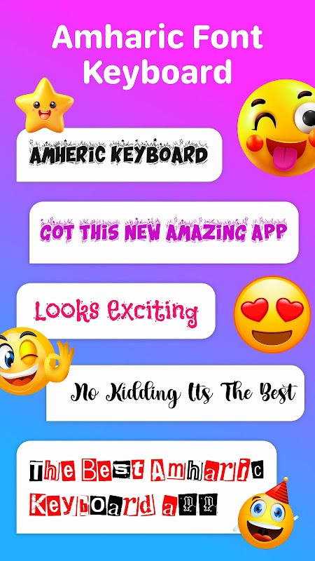 Amharic keyboard for Ethiopia with stylish theme, quick typing & emojis keyboard