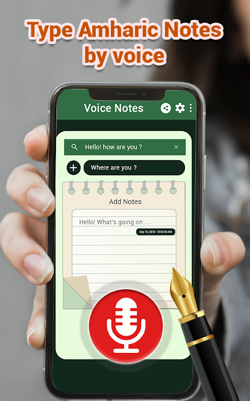 Write your thoughts and important point which want to save in your daily life in your own Amharic language. Amharic Voice notes memos let you take speech notes/Speech to text even faster: Just dictate the text in the microphone and see what you say in speech recognition app by pressing mic button at the bottom. Speak Notes is simple, lightweight and easy to use, but with many great features. Instead of writing long sentences and notes, you can just relax and take notes by speaking aloud.