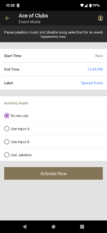 - Event Mode – Temporarily halt music playback and prevent patrons from making paid selections at the jukebox or via the AMI Music app for a set amount of time.
