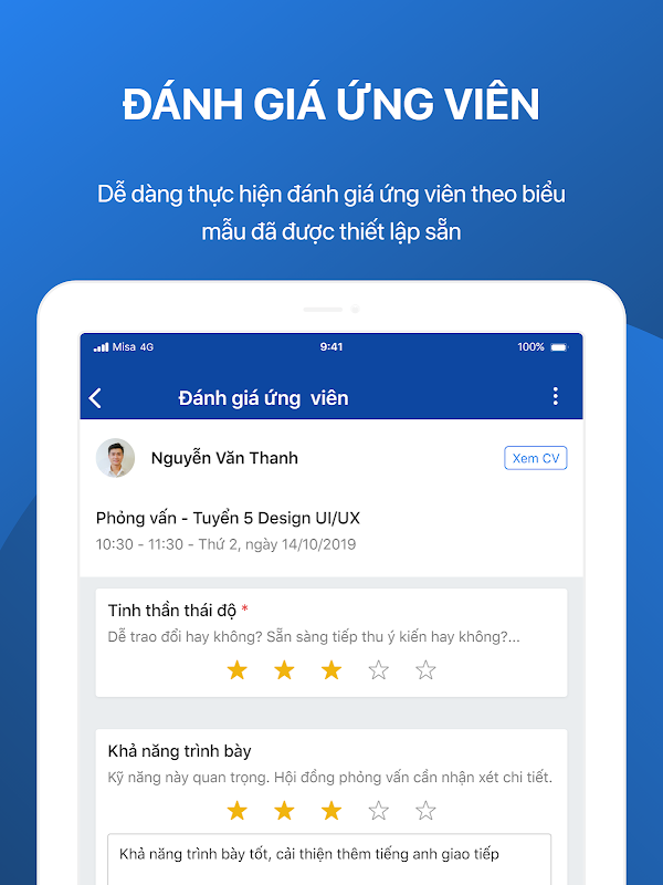• Easy to conduct candidate evaluation at the request of a recruiting specialist