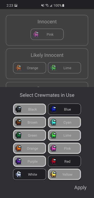 This app allows you to easily categorize your fellow crewmates while playing Among Us.