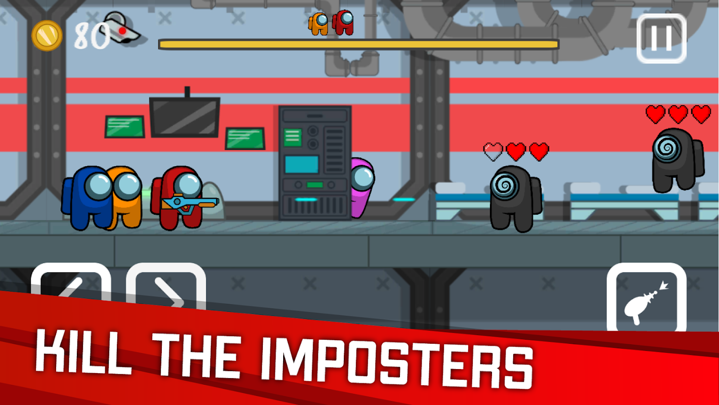 For gold, you can increase Among energy, buy new armor and weapons! All these improvements will help you pass the level! At the end of each level you will find an exciting mini-game and an epic battle with the imposter!