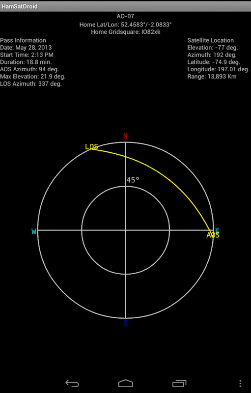 - Update keps from a file on SD card or directly from AMSAT's webpage using your phone's internet connection