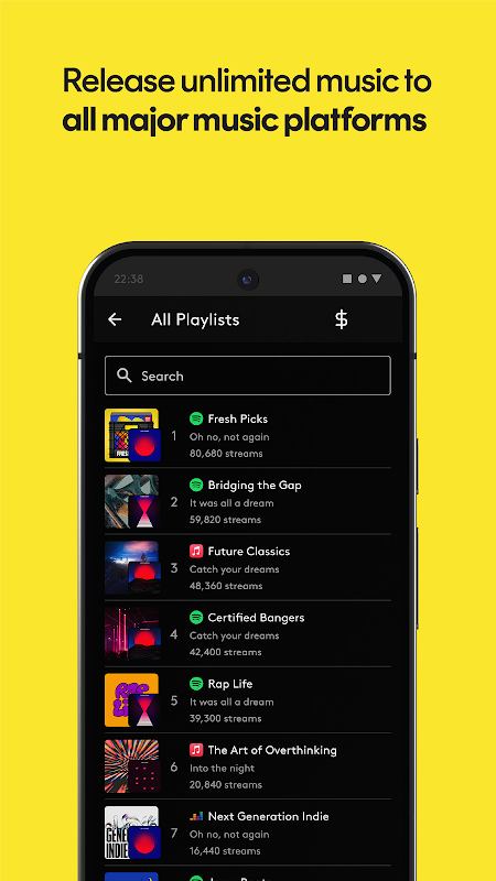 Release unlimited music from your device to the world in as little as 24 hours. That’s why hundreds of thousands of artists, teams and labels release through Amuse.